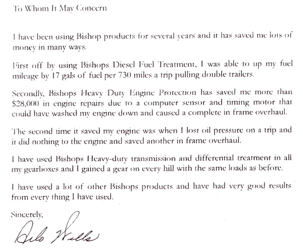 I fly commercially up and down the east coast from the Carolina's to Rhode Island as a fish spotter for the fishing companies in Reedville, VA. I have been using Bishop's Original Aircraft Engine Protection in my aircraft for more than two years now. I am very satisfied with your product's performance.